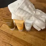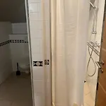 Separat toilet og en bruser er til fri afbenyttelse på værelserne.